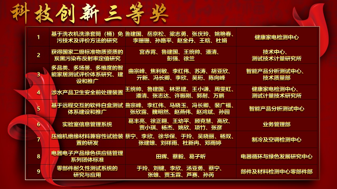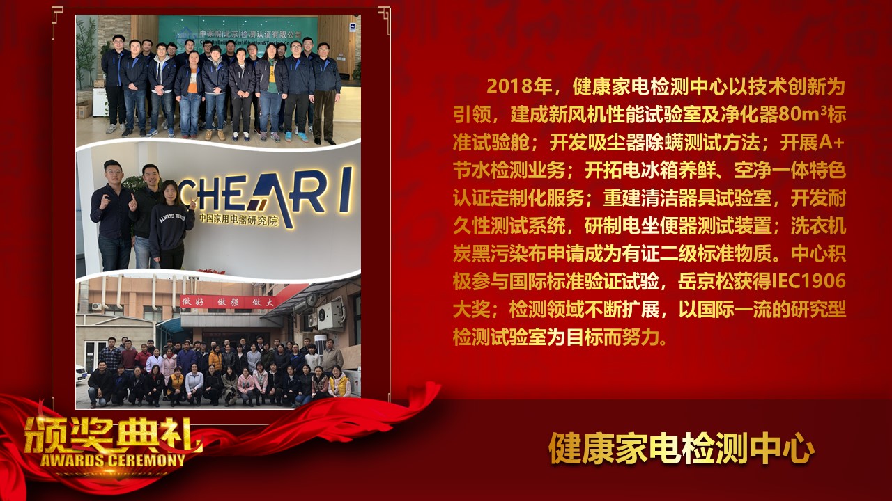 中國家用電器研究院2018年度表彰與獎勵
