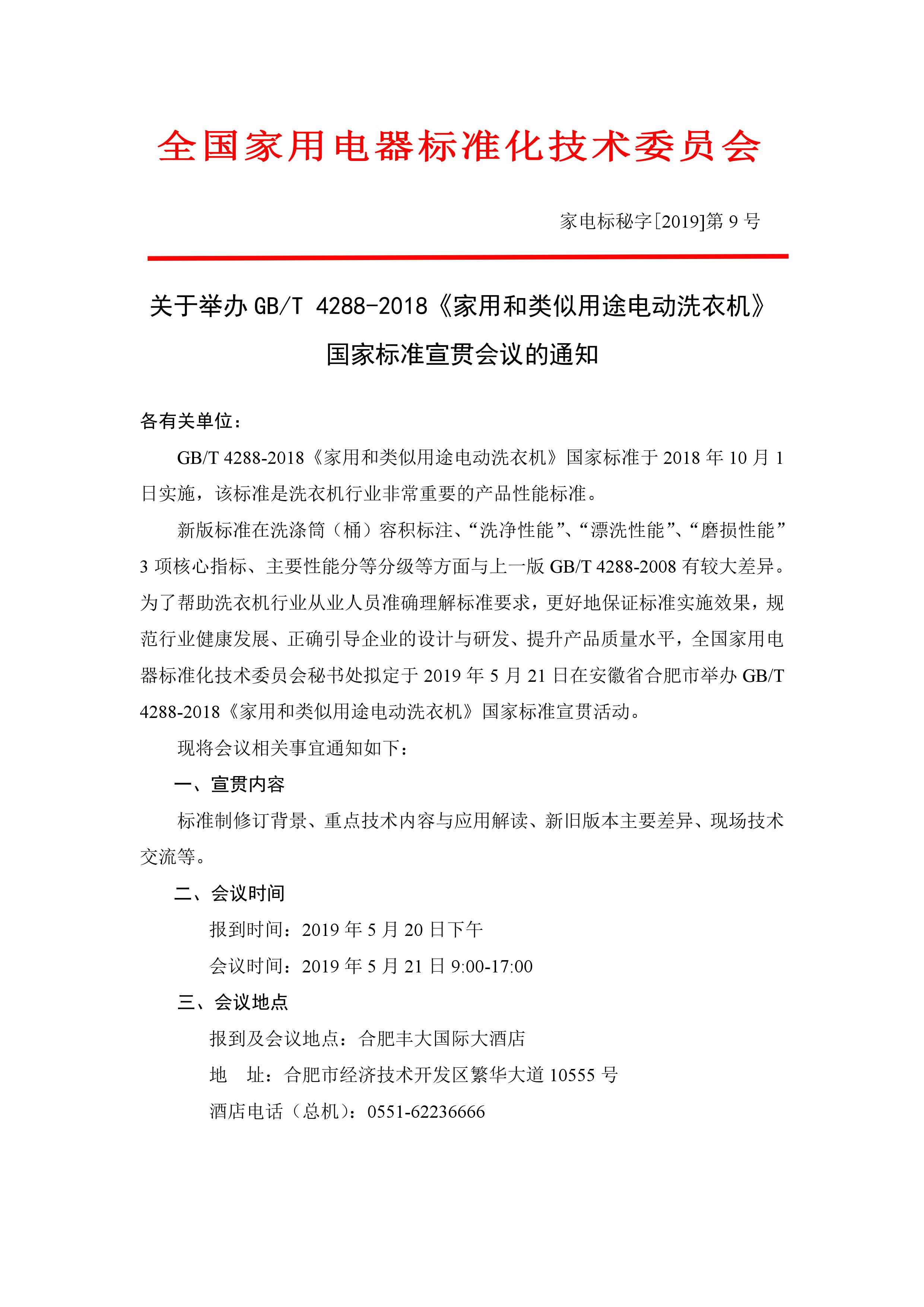 新版標(biāo)準(zhǔn)在洗滌筒(桶)容積標(biāo)注、“洗凈性能”、“漂洗性能”、“磨損性能”3 項(xiàng)核心指標(biāo)、主要性能分等分級(jí)等方面與上一版 GB/T 4288-2008 有較大差異。為了幫助洗衣機(jī)行業(yè)從業(yè)人員準(zhǔn)確理解標(biāo)準(zhǔn)要求,更好地保證標(biāo)準(zhǔn)實(shí)施效果,規(guī)范行業(yè)健康發(fā)展、正確引導(dǎo)企業(yè)的設(shè)計(jì)與研發(fā)、提升產(chǎn)品質(zhì)量水平,全國家用電器標(biāo)準(zhǔn)化技術(shù)委員會(huì)秘書處擬定于 2019 年 5 月 21 日在安徽省合肥市舉辦 GB/T 4288-2018《家用和類似用途電動(dòng)洗衣機(jī)》國家標(biāo)準(zhǔn)宣貫活動(dòng)。
