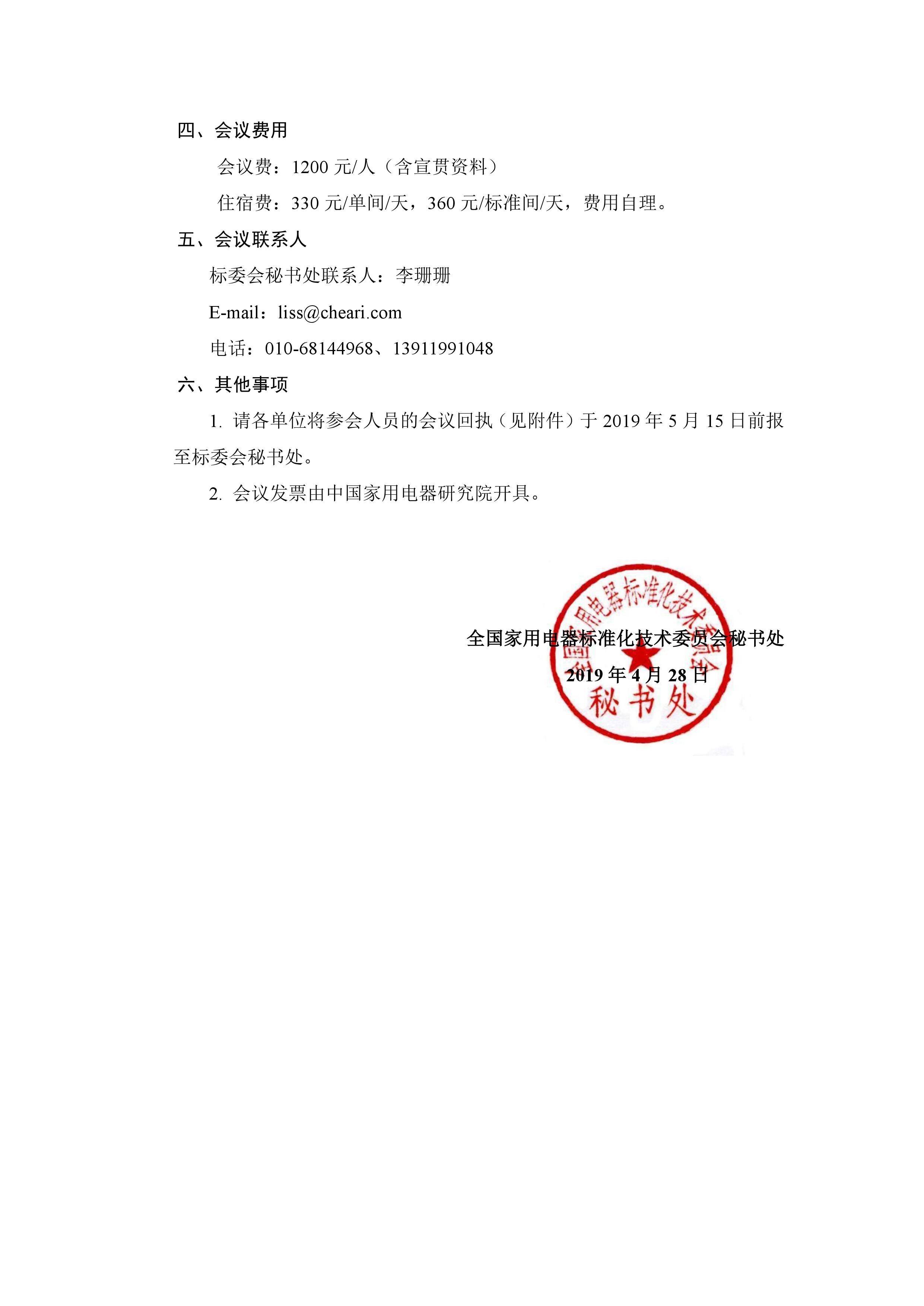 1. 請(qǐng)各單位將參會(huì)人員的會(huì)議回執(zhí)(見附件)于 2019 年 5 月 15 日前報(bào)至標(biāo)委會(huì)秘書處。